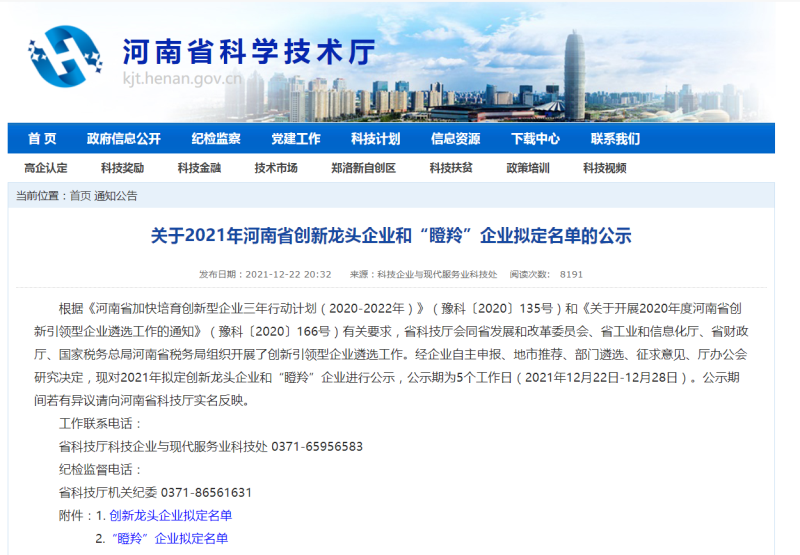 近日,河南省科学技术厅公布了2021年河南省“瞪羚”企业拟认定名单,洛阳科博思新材料科技有限公司成功入选。